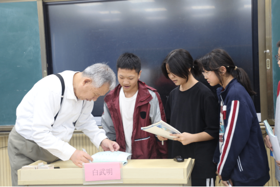 講座結束后,意猶未盡的同學們更是自發(fā)排起長隊,懷著對科學家的崇敬之情,請白教授簽名留念,場面溫馨而感人。