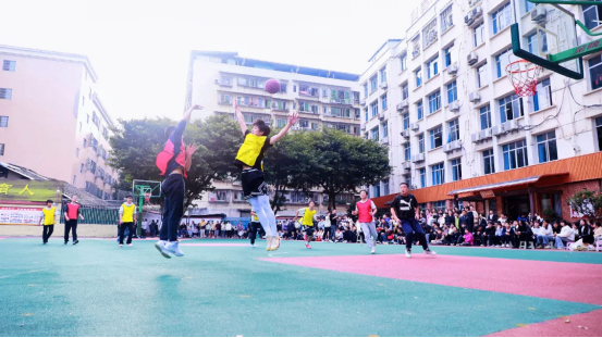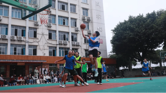老師們褪去講臺(tái)的沉穩(wěn),身著球衣融入賽場(chǎng),瞬間點(diǎn)燃全場(chǎng)熱情,引發(fā)陣陣尖叫。學(xué)生球員們毫不怯場(chǎng)、敢打敢拼,憑借年輕的爆發(fā)力頻頻發(fā)起猛烈沖擊;老師們則憑借豐富的賽場(chǎng)經(jīng)驗(yàn)穩(wěn)扎穩(wěn)打,一記記精準(zhǔn)的中距離跳投、巧妙的傳球配合,讓學(xué)生們紛紛起立鼓掌叫好,賽場(chǎng)氛圍推向頂峰。